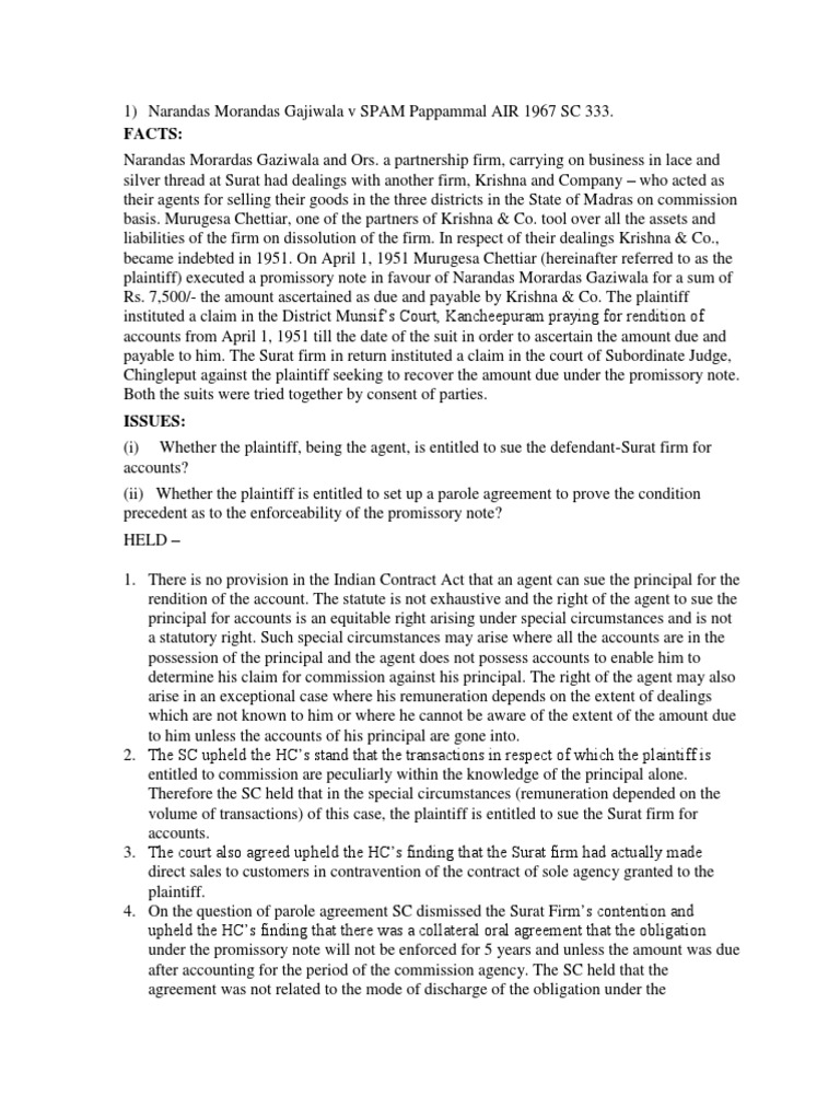 1) Narandas Morandas Gajiwala v SPAM Pappammal AIR 1967 SC 333.