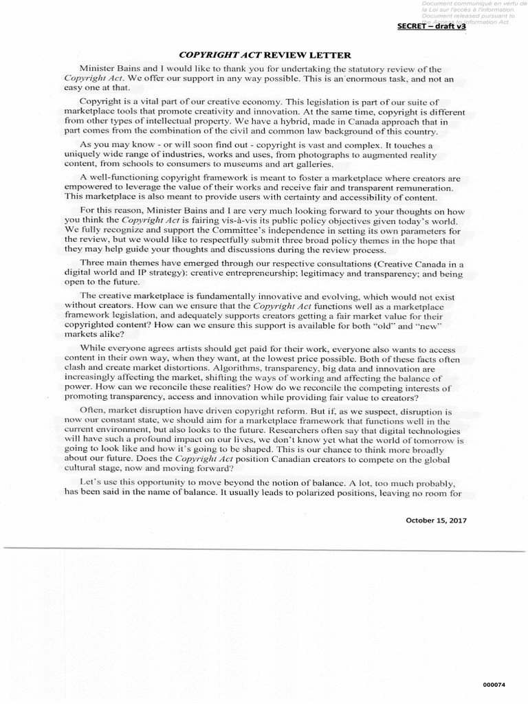 COPYRIGHT ACT REVIEW LETTER
