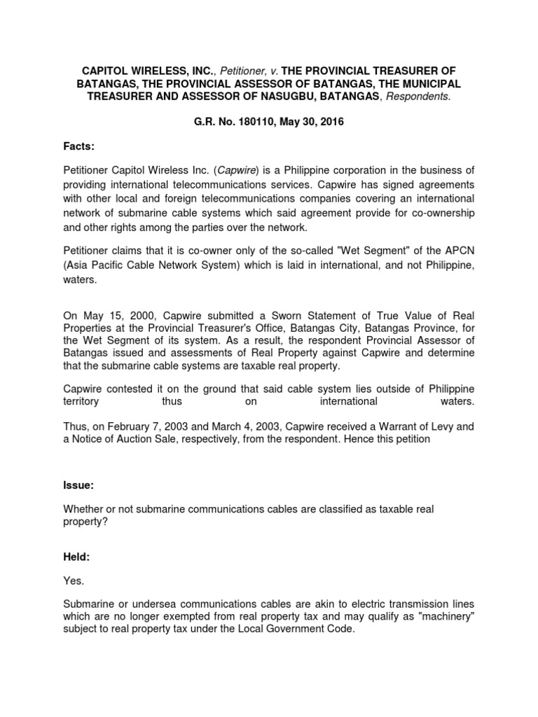Petitioner Capitol Wireless Inc. (Capwire) is a Philippine corporation in the business of