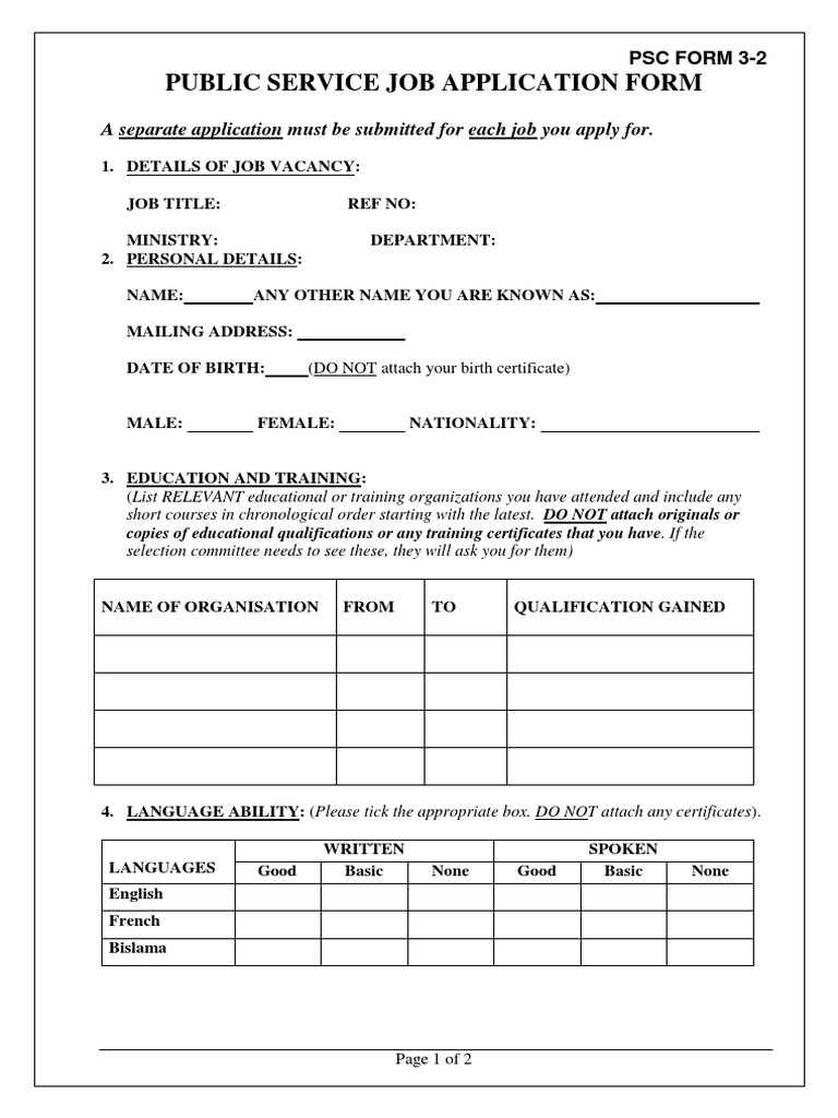 PUBLIC SERVICE JOB APPLICATION FORM