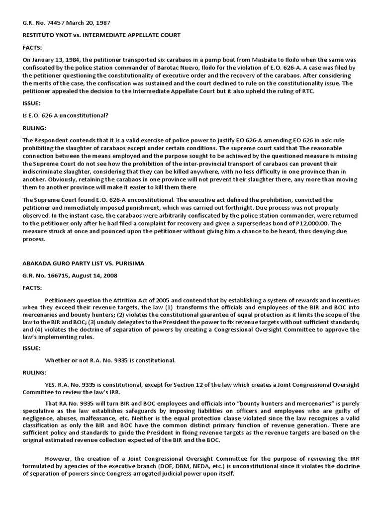 the petitioner questioning the constitutionality of executive order and the recovery of the carabaos. After considering