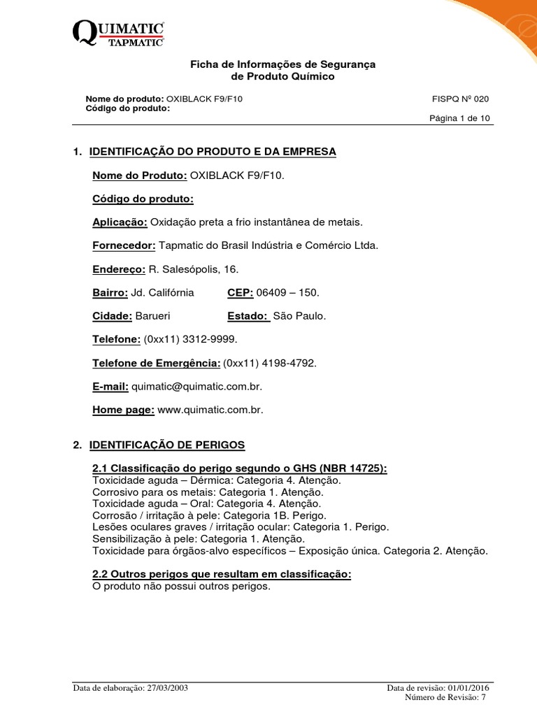 Nome do produto: OXIBLACK F9/F10 FISPQ Nº 020