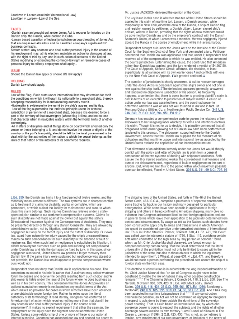 Lauritzen v. Larsen - Law of the Sea The key issue in this case is whether statutes of the United States should be