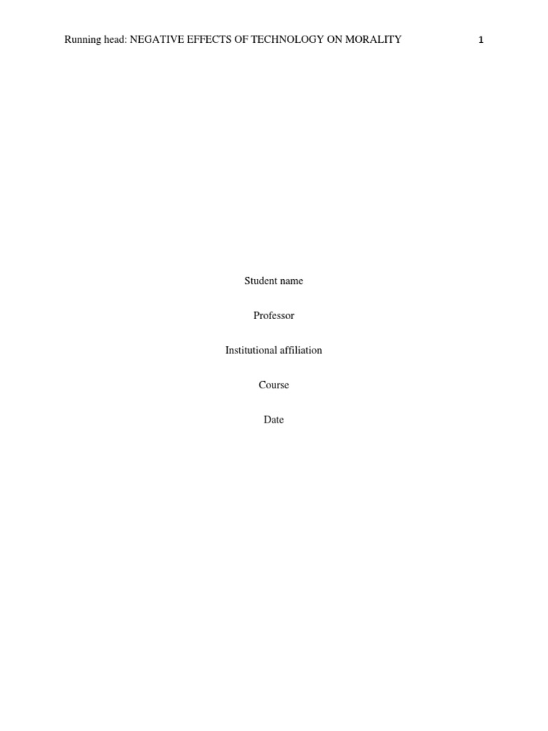 Running head: NEGATIVE EFFECTS OF TECHNOLOGY ON MORALITY 1