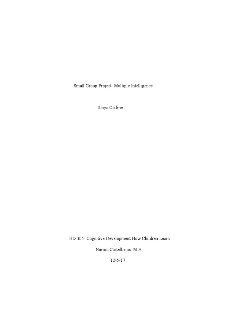 Small Group Project: Multiple Intelligence