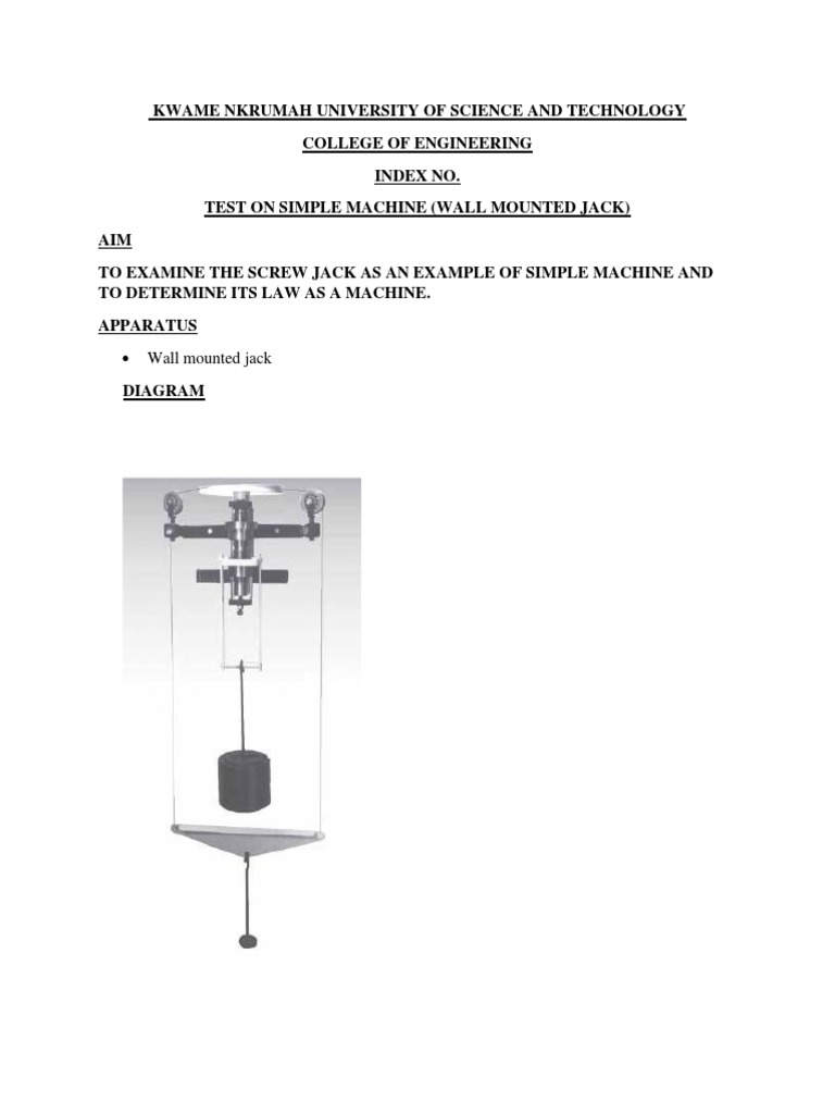 TO EXAMINE THE SCREW JACK AS AN EXAMPLE OF SIMPLE MACHINE AND