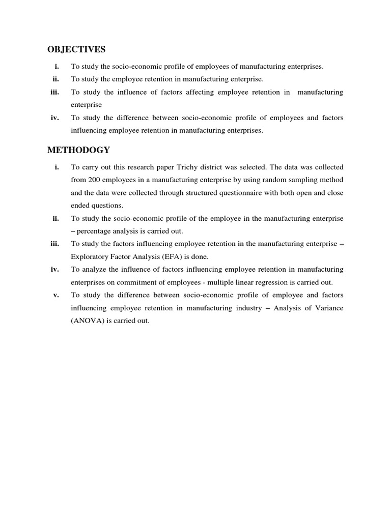 iv. To analyze the influence of factors influencing employee retention in manufacturing