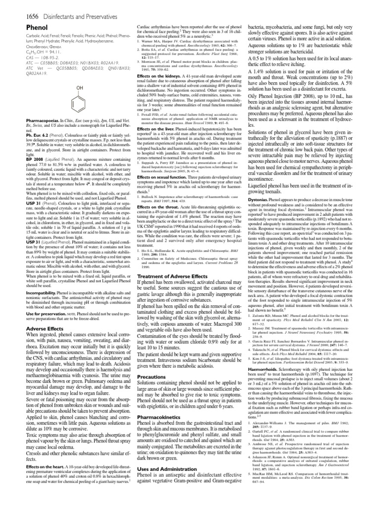 Carbolic Acid; Fenol; Fenoli; Fenolis; Phenic Acid; Phénol; Pheno- dren who received phenol 5% as a neurolytic.3
