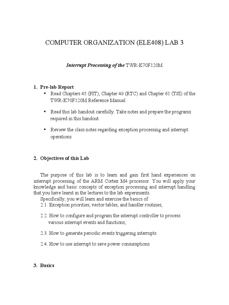 interrupt processing of the ARM Cortex M4 processor. You will apply your