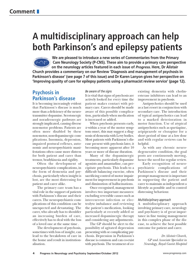 Parkinson’s disease’ (see page 7 of this issue) and Dr Karen Lanyon gives her perspective on