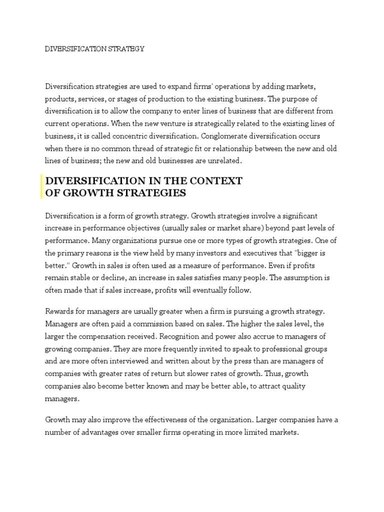 Diversification is a form of growth strategy. Growth strategies involve a significant