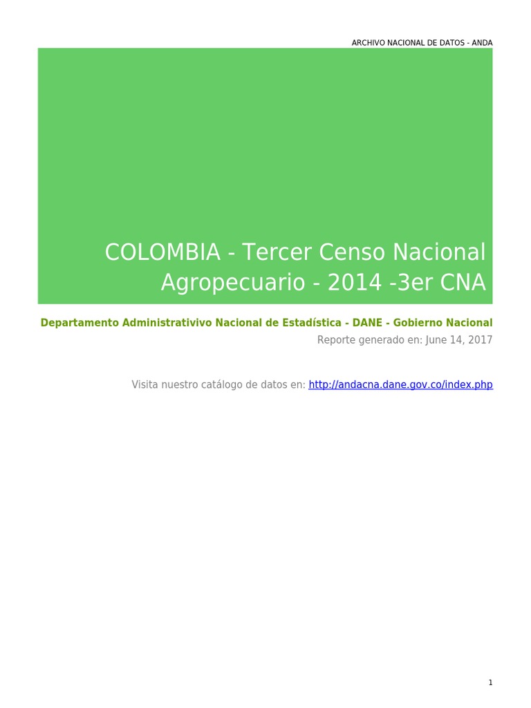 COLOMBIA - Tercer Censo Nacional Agropecuario - 2014 -3er CNA
