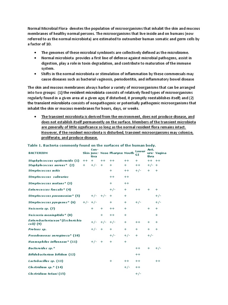 Table 1. Bacteria commonly found on the surfaces of the human body.