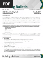 The document summarizes key changes in the 2012 Ontario Building Code that take effect on January 1, 2014. Some highlights include new requirements for smoke alarms, sprinklers in multi-unit residential buildings, energy efficiency increases of 13-15% by 2017, water conservation measures, and clarified definitions. The changes are intended to enhance health and safety while allowing flexibility and supporting Ontario's building industry.