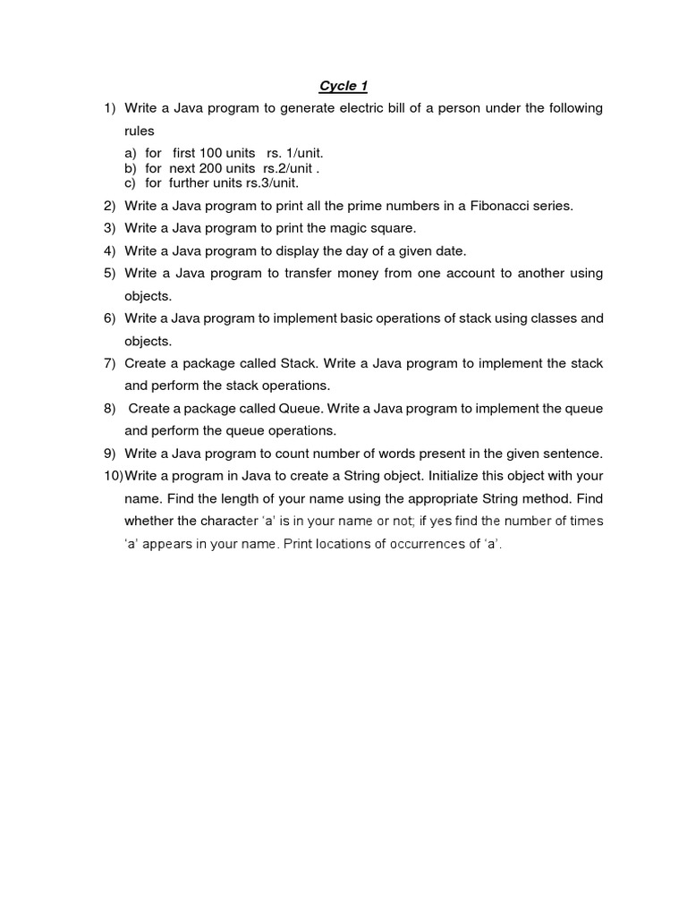 1) Write a Java program to generate electric bill of a person under the following