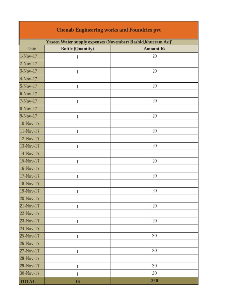 Yaseen Water supply expenses (November) Rashid,khurram,Asif