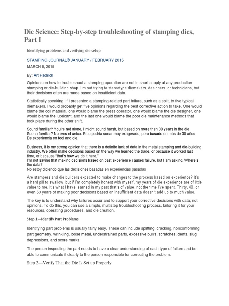 Die Science: Step-by-step troubleshooting of stamping dies,