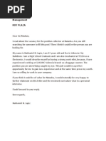 In reference to your vacancy of collector .I am writing to express my interest in position.