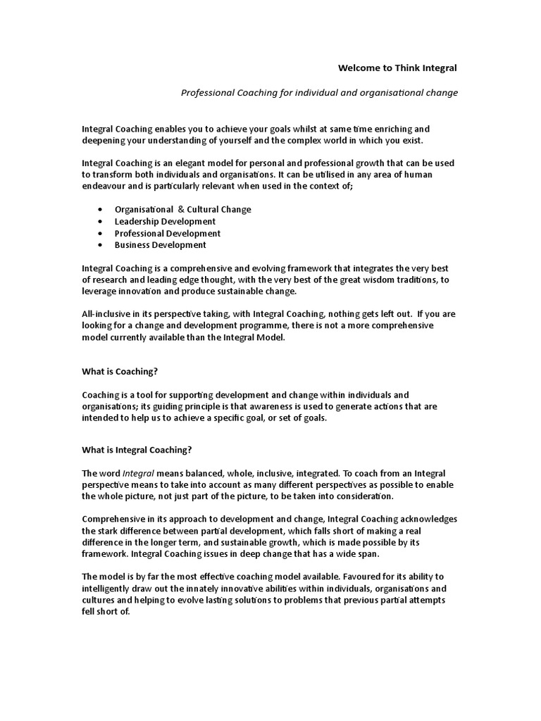 framework. Integral Coaching issues in deep change that has a wide span.