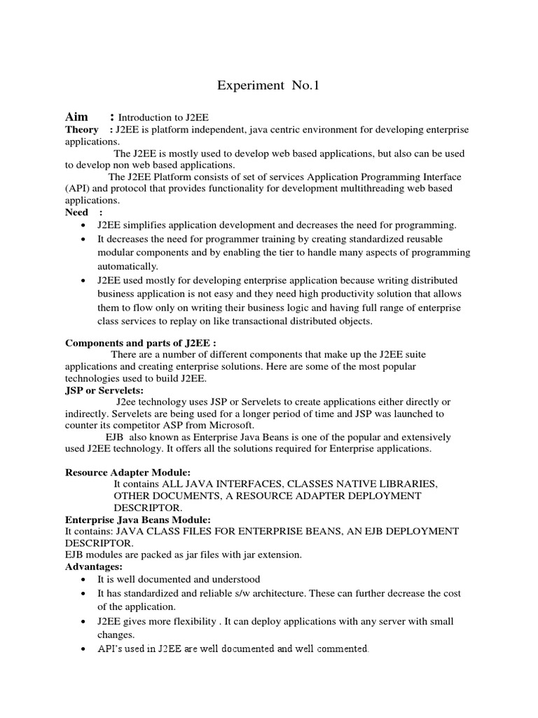 Aim : Introduction to J2EE