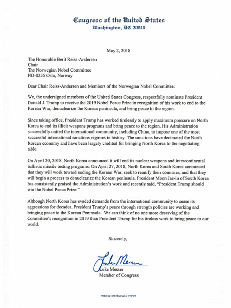Lawmakers nominate Trump for Nobel Peace Prize.
