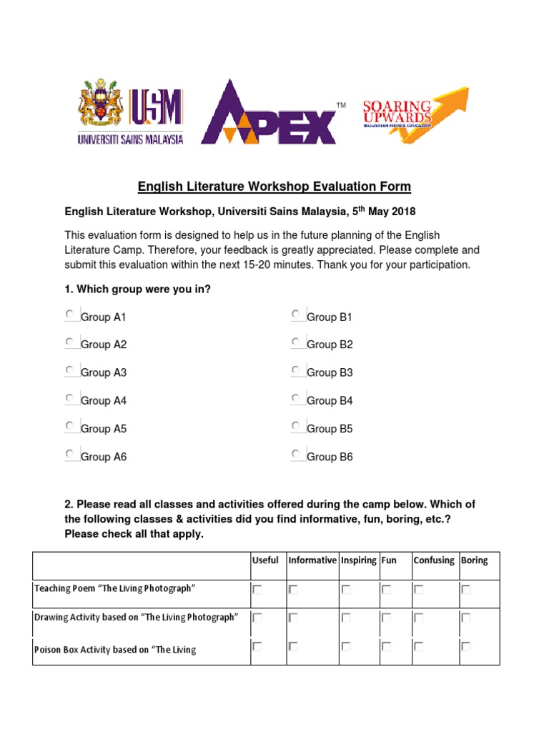 English Literature Workshop, Universiti Sains Malaysia, 5th May 2018