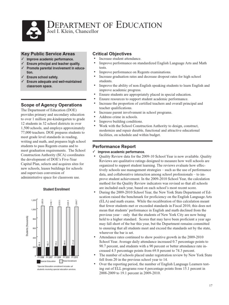 and special education; data on expenditures per student; schools that exceed capacity; and school