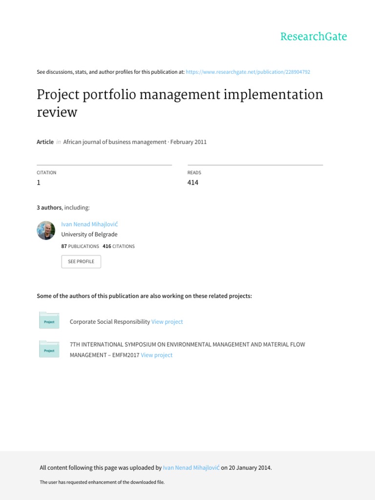 Project Portfolio Management Implementation Review