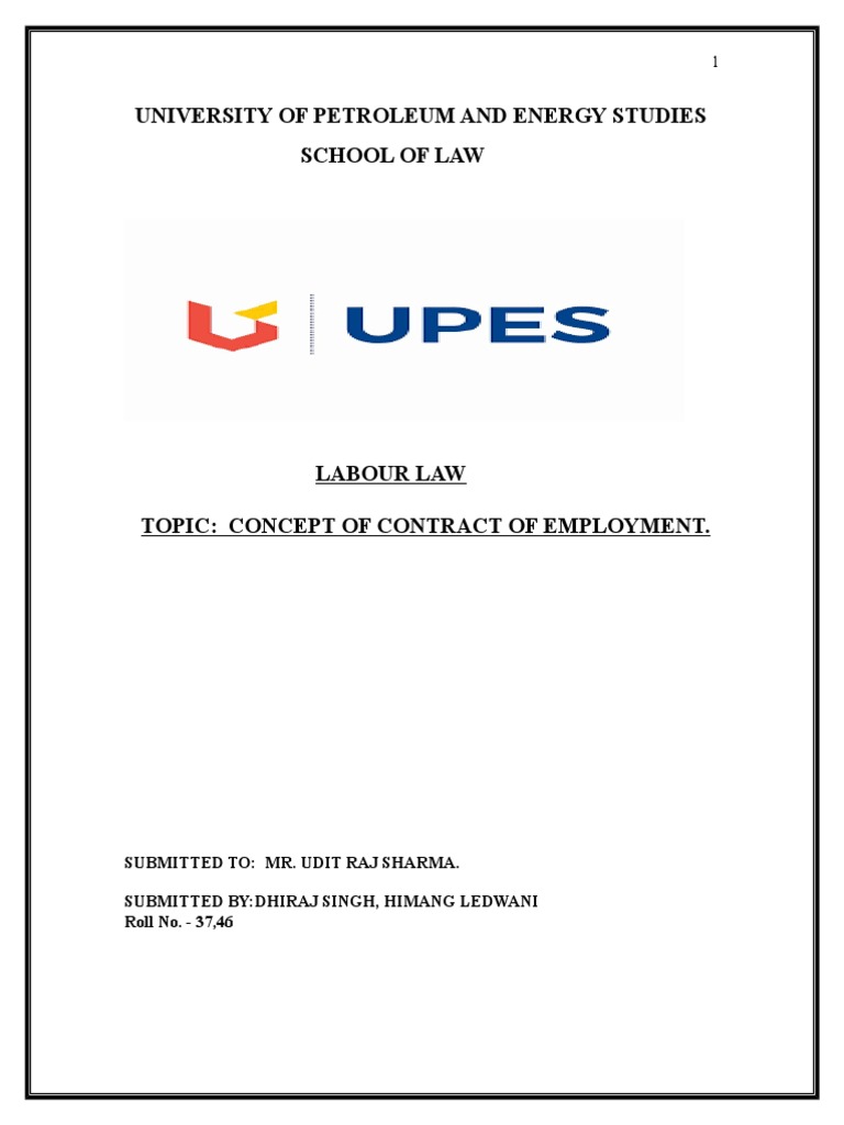 TOPIC: CONCEPT OF CONTRACT OF EMPLOYMENT.