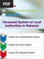 Malaysia practices the fusion personnel system in local government. This system provides
