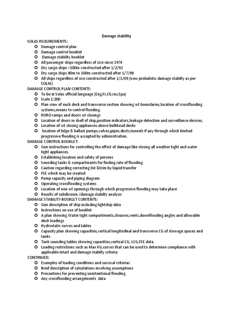 DAMAGE STABILITY BOOKLET CONTENTS: