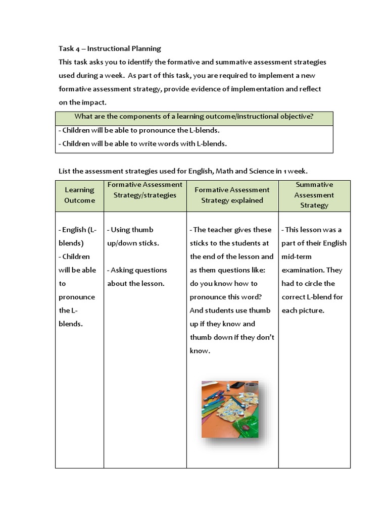 Task 4 – Instructional Planning