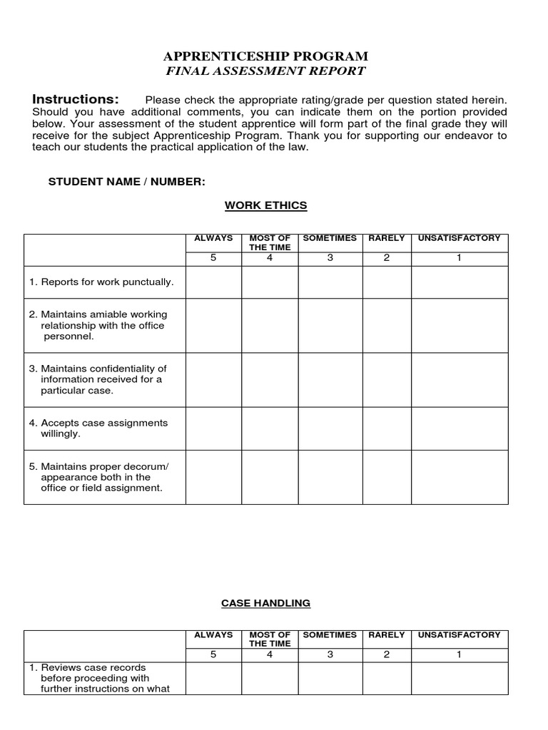 below. Your assessment of the student apprentice will form part of the final grade they will