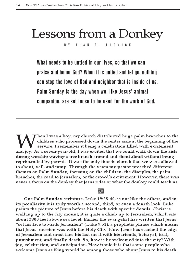 assignment—to find an animal for Jesus to ride—to be of little importance. I