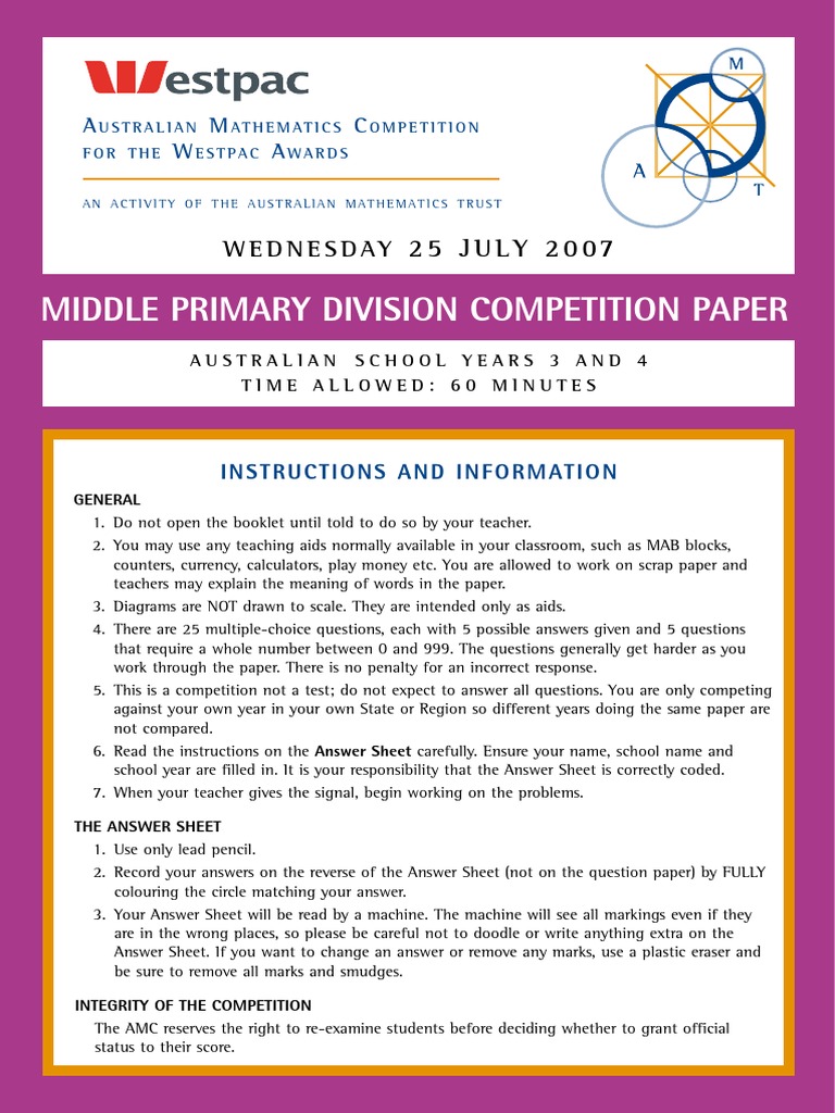 Middle Primary Division Competition Paper: What Is The Amc?