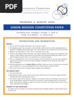 in the time allowed. The students use a special answer sheet that is processed and marked by computer. A u s t r a l i a n M a t h e ma t i c s C o m p e t i t i o n