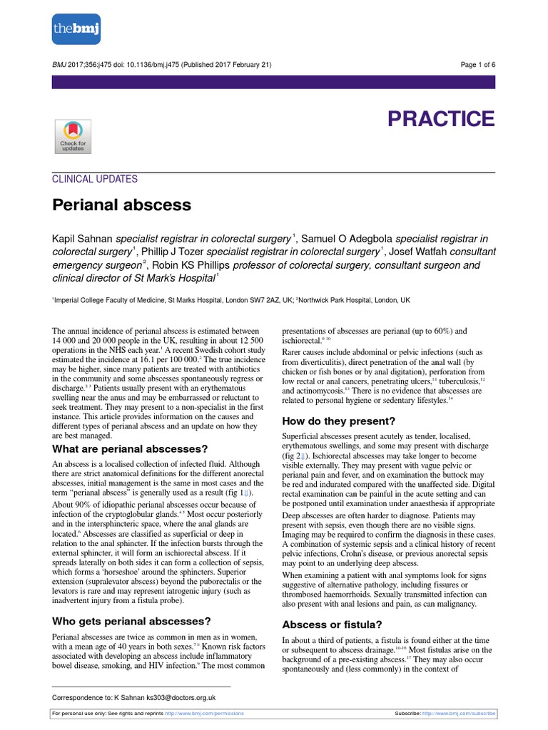 Provenance and peer review: Not commissioned; externally peer 29 Smith SR, Newton K, Smith JA, et al. Internal dressings for healing perianal abscess