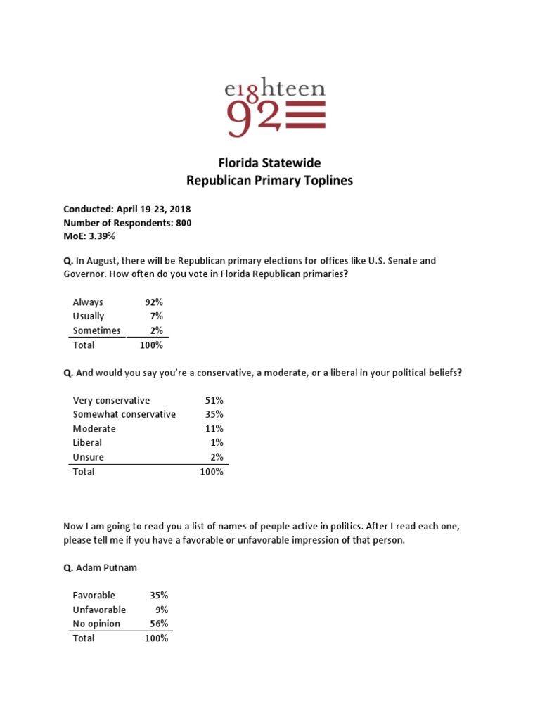 Florida Statewide Republican Primary Toplines