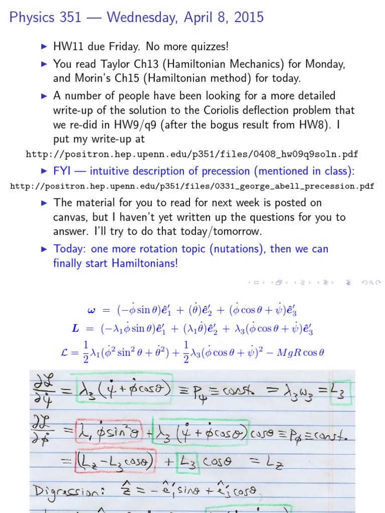 and Morin’s Ch15 (Hamiltonian method) for today.