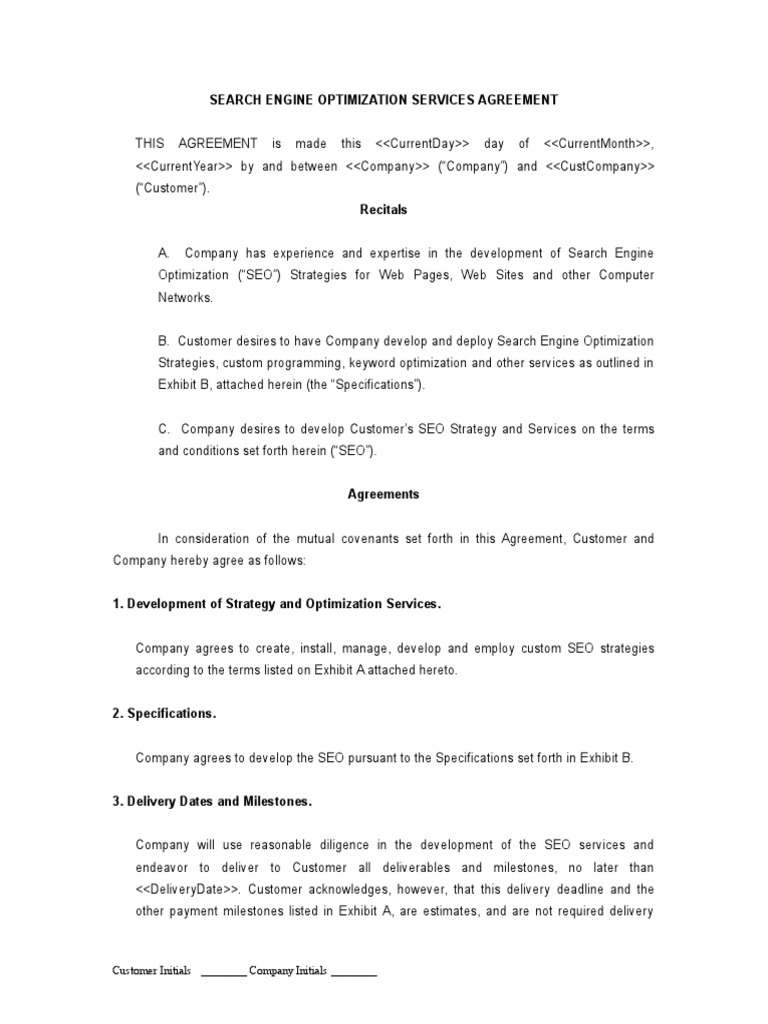 C. Company desires to develop Customer’s SEO Strategy and Services on the terms
