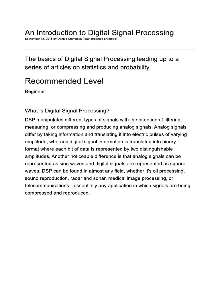An Introduction to Digital Signal Processing