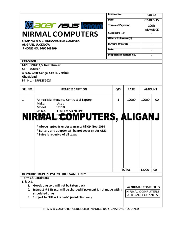 NIRMAL COMPUTERS Supplier's Ref.
