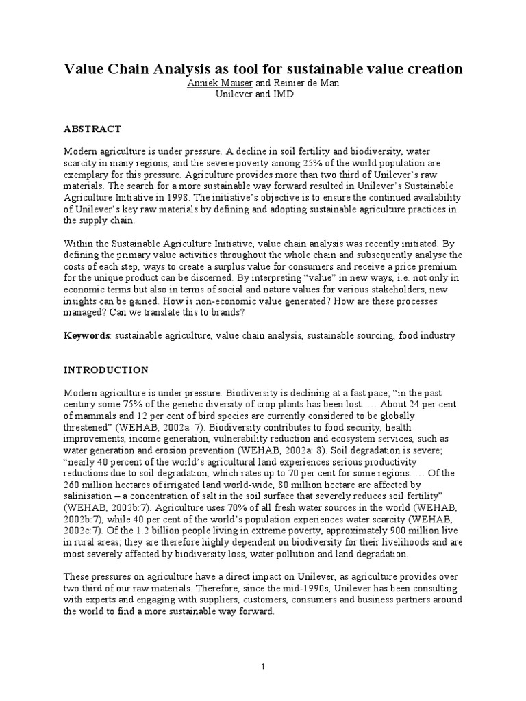 Keywords: sustainable agriculture, value chain analysis, sustainable sourcing, food industry