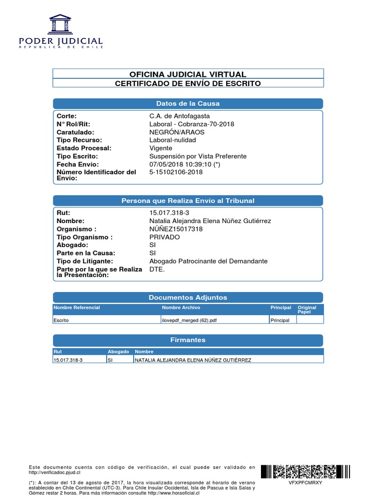 15.017.318-3 SI NATALIA ALEJANDRA ELENA NÚÑEZ GUTIÉRREZ
