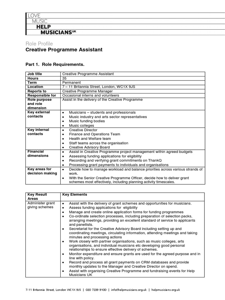 Administer grant Assist with the delivery of grant schemes and opportunities for musicians.