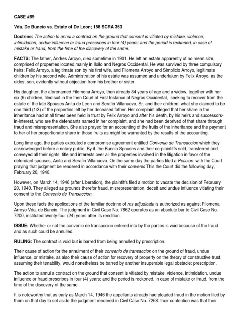 Vda. De Buncio vs. Estate of De Leon; 156 SCRA 353