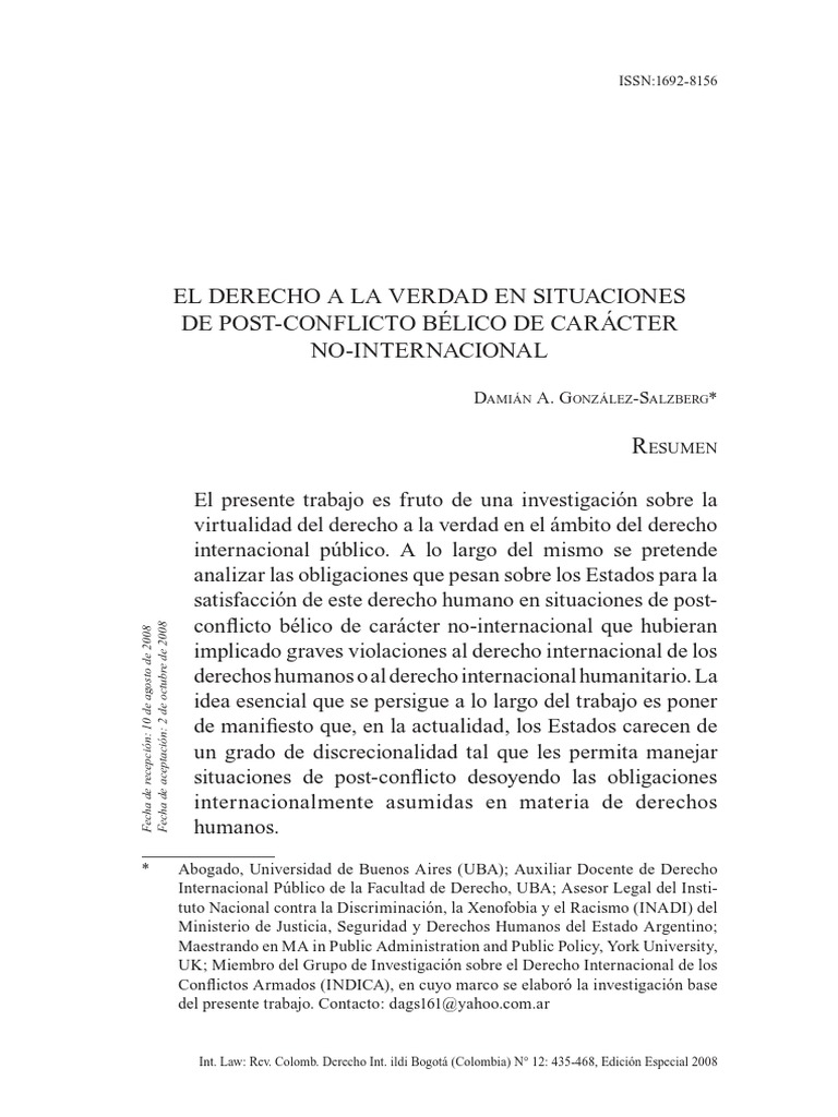 El derecho a la verdad en situaciones de post-conflicto bélico 437