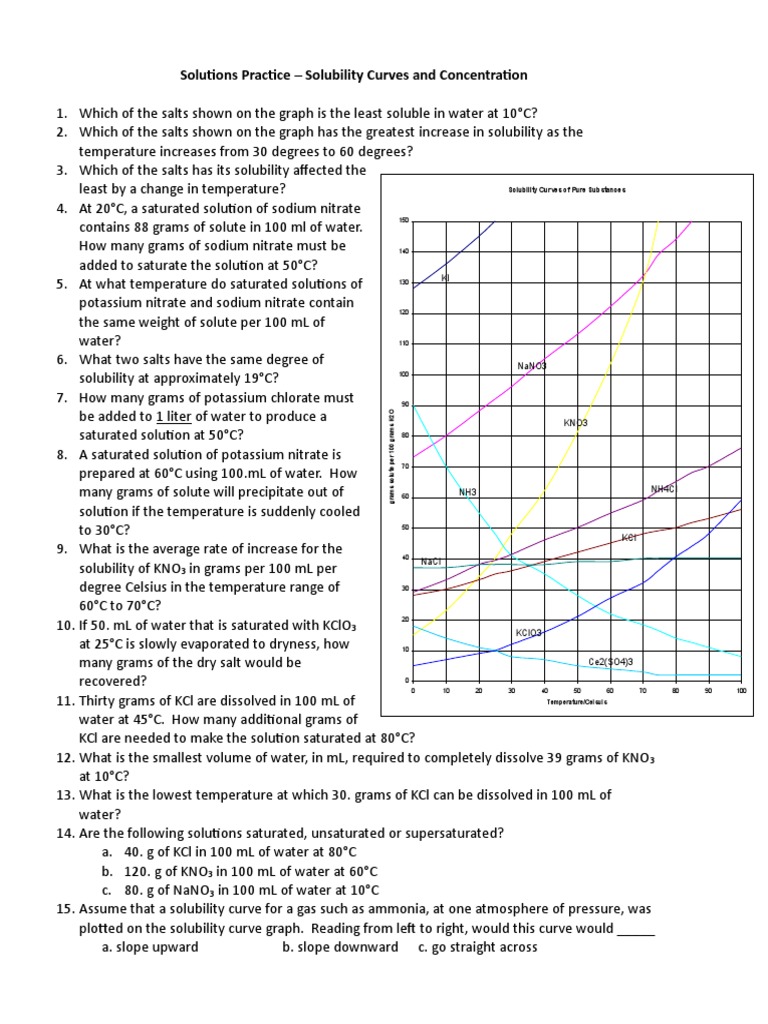 Solutions Practice – Solubility Curves and Concentration
