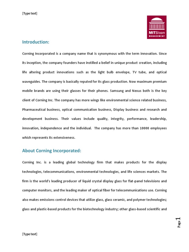 Corning Inc is basically a company which does business based on R&D and innovation. They