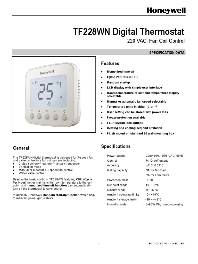 In addition, Honeywell Random start-up function would help Ambient operating limits 0~ +49°C